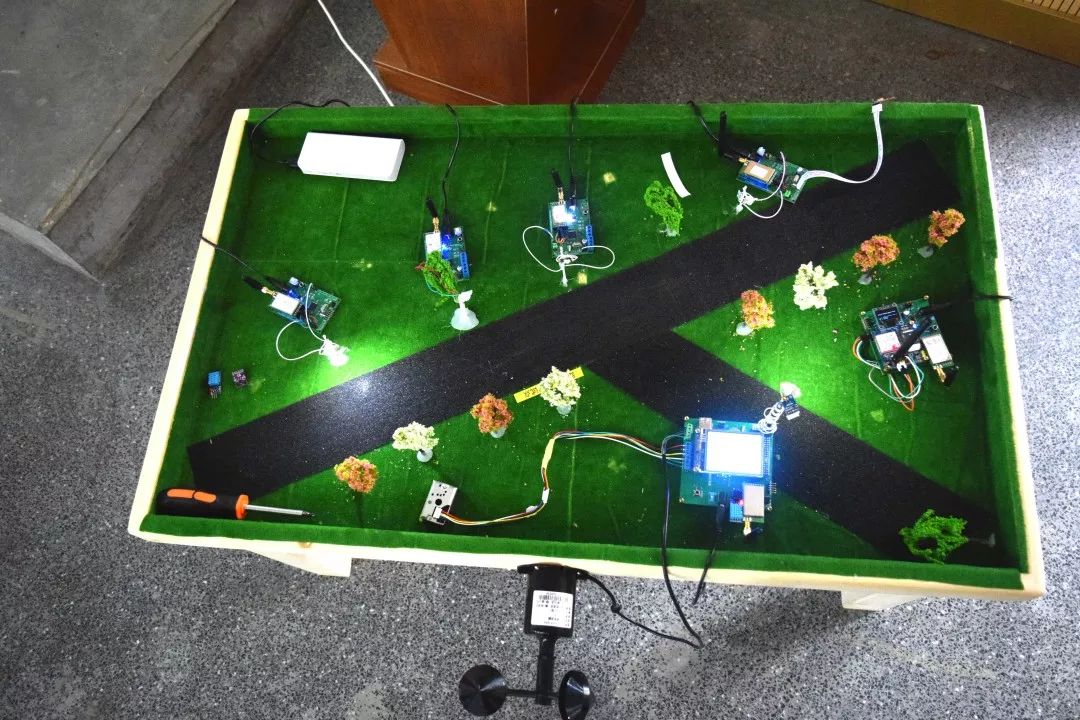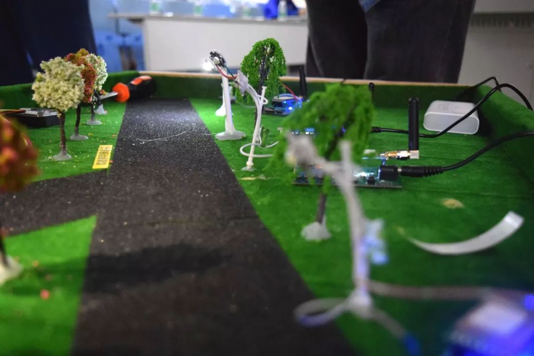 比赛的过程中不少团队展示了参赛作品实物。如“云路灯”:一种基于LoRaWAN的智慧路灯系统。据作者介绍这是一个可以根据车辆来往信息智能控制路灯的开关的系统,这一曾经参赛的作品已在原有基础上进行了改进。